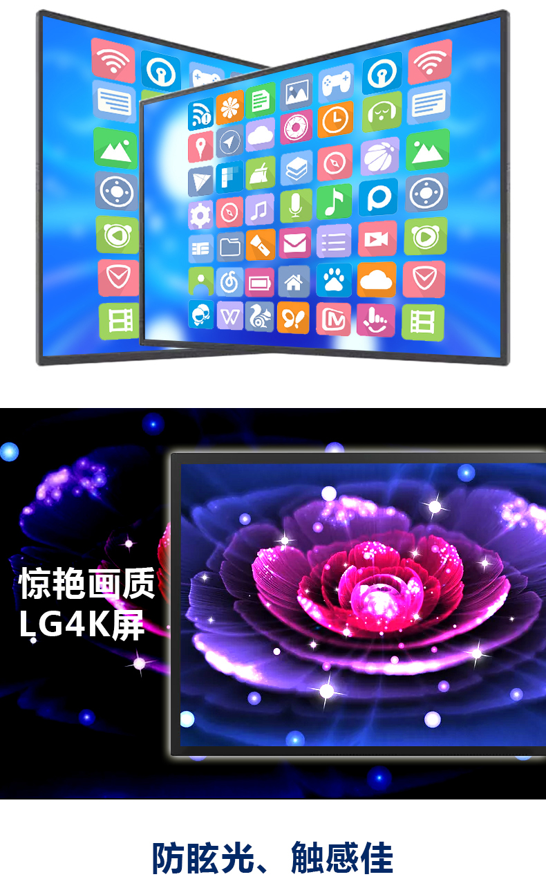 6、鋁合金外框,表面拉絲并陽極氧化處理,鐵殼后蓋,主動散熱; 7、4mm物理鋼化防暴高透玻璃;加強視覺效果,提升觸摸體驗; 8、高速10點觸控書寫體驗,更好的圓滑度,更快的書寫速度; 9、超窄拉絲面框,超窄邊設(shè)計,整機面框單邊寬度只有25mm; 10、使用國際通用標(biāo)準(zhǔn)的OPS插槽,一體化插拔式設(shè)計,方便升級與維護,外部無可見電腦模塊的連接線,機身美觀; 11、正面前置式擴展端口:1路PC-USB /1路TV-USB /1路VGA+(音頻)1路HDMI /1路TOUCH-USB接口,方便用戶拓展使用; 12、前置三合一電視電腦開關(guān)按鍵,一體化設(shè)計,既能在臨時不用此設(shè)備的時候,集中學(xué)生注意力;又能節(jié)省能源,節(jié)能環(huán)保,同時還延長機器壽命,這樣設(shè)計還方便用戶使用; 13、按鍵前置,便于嵌入式安裝,并支持童鎖,通過設(shè)置可屏蔽按鍵功能,以免誤操作; 14、喇叭出音前置,防止因內(nèi)嵌式的環(huán)境導(dǎo)致聲音效果變質(zhì); 15、帶RS232接口,方便擴展視頻展臺等其他設(shè)備; 16、觸摸屏具有防遮擋功能,單點或多點遮擋后仍能正常流暢書寫; 17、自帶嵌入式安卓(Android)5.1,操作系統(tǒng)雙系統(tǒng)安全備用,方便老師操作; 18、中控觸摸菜單:脫離android系統(tǒng)和PC,通過手勢操作可以調(diào)出便捷菜單,實現(xiàn)返回觸控、便捷菜單、通道切換、白板操作功能; 19、支持溫控功能,隨時可以知曉整機溫度,設(shè)置溫度預(yù)警,保護整機,當(dāng)整機達到80度,整機將進入待機模式; 20、無線遙控功能:設(shè)計具備電視遙控功能和電腦鍵盤常用的F1—F12等功能等組合按鍵,方便課堂教學(xué)控制,支持PPT課件翻頁筆功能,能夠遠程進行上下翻頁,方便教學(xué); 21、安卓熱鍵功能:懸浮式快捷鍵,可以放置在安卓桌面的任意位置; 22、支持APK安裝以及所有APK權(quán)限管理,可以預(yù)設(shè)APK使用權(quán)限,允許或者禁止使用已安裝的應(yīng)用 23、安卓界面可以顯示進入安卓前信號通道顯示內(nèi)容,支持畫中畫功能; 24、支持任意通道下觸摸菜單,含有:返回、安卓主頁、運行程序、信號源選擇、菜單、批注、音量調(diào)節(jié)、靜音、節(jié)能模式、觸摸菜單隱藏、等觸摸選項; 25、安卓默認(rèn)瀏覽器導(dǎo)航:支持瀏覽器導(dǎo)航設(shè)置,方便使用查詢相關(guān)信息 |