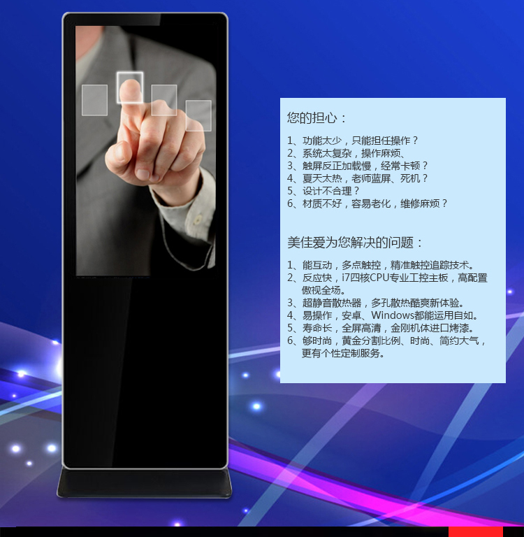 【深圳市美佳愛-液晶廣告機,觸摸顯示器生產廠家電話400-997-9971】43寸紅外觸摸一體機,觸控顯示器通過ISO9001_3C認證,主營多點紅外/電容式觸摸屏一體機,觸控查詢一體機,其他尺寸18.5寸21寸24寸27寸32寸40寸43寸46寸49寸55寸65寸75寸86寸98寸100寸多功能多媒體教學會議一體機,戶外立式/壁掛雙面廣告機,單機版/安卓網絡廣告機 豎屏樓宇電梯廣告機,長條型屏,工業級工控電腦觸摸顯示器,大尺寸觸摸屏查詢系統,商顯平板電腦電視,提供報價價格,安裝施工,售后維修等
